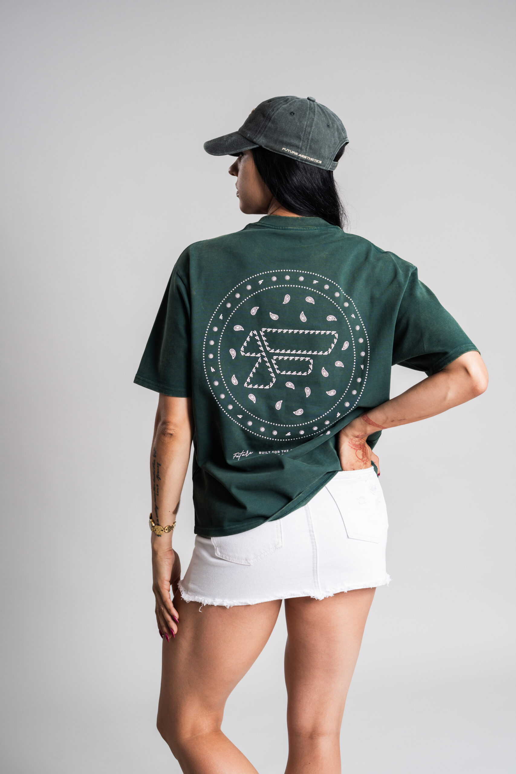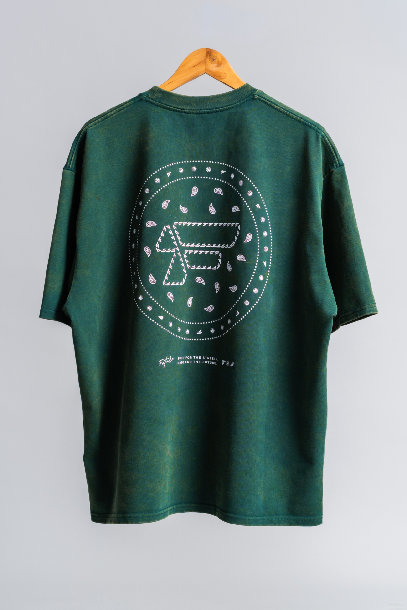 Design: Crafted from heavyweight 340 GSM 100% cotton, this oversized t-shirt delivers structure, durability, and a strong silhouette. The custom forest green acid wash finish creates depth and character — no two pieces are exactly the same. Pre-washed for a soft hand feel and reduced shrinkage, this tee is made to hold its shape while breaking in naturally over time.